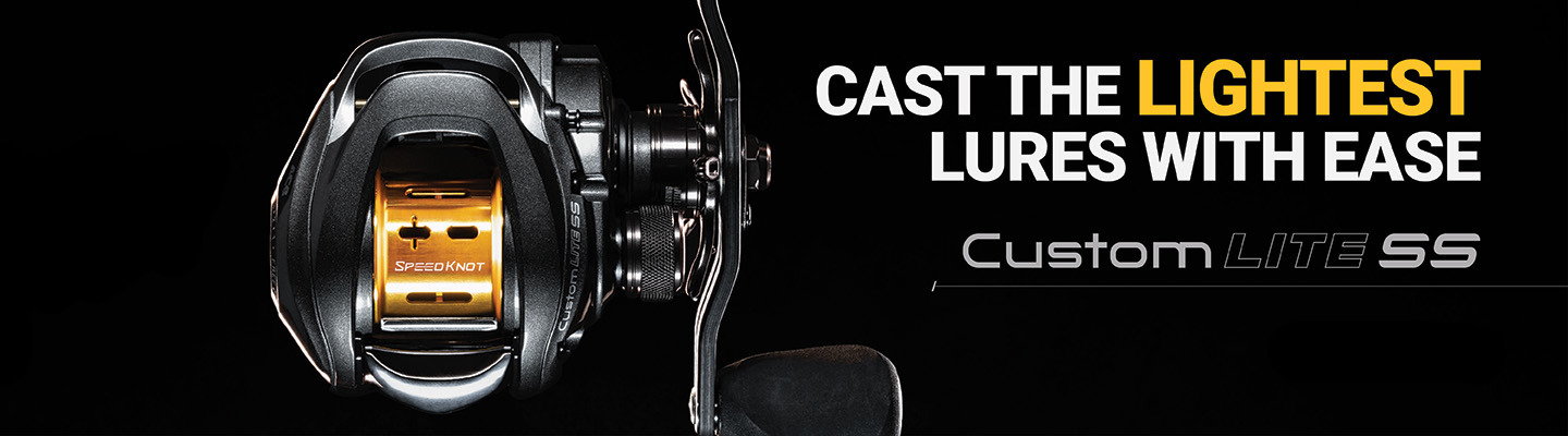 Engineered to cast light baits further with accuracy and ease, the newest Custom Lite features an ultra-shallow 30mm spool design that requires less inertia to spin when casting light weights, helping you put finesse baits exactly where you want them in any condition. Anglers who rely on small crankbaits, finesse swimbaits and weightless soft plastics will find a trusted tool with the Custom Lite SS. Maintain the power and control of a baitcasting reel with smaller baits to attract the fish that won't eat a heavy, bulky bait. Perfect for drop-shotting over deep ledges, ned rigging across rocky flats and accurately casting the lightest poppers and wacky rigs around shallow vegetation.